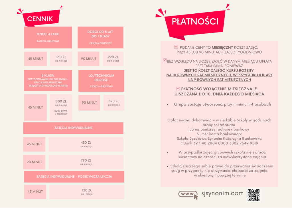 Poniżej znajdziecie cennik naszych kursów 2025/2026